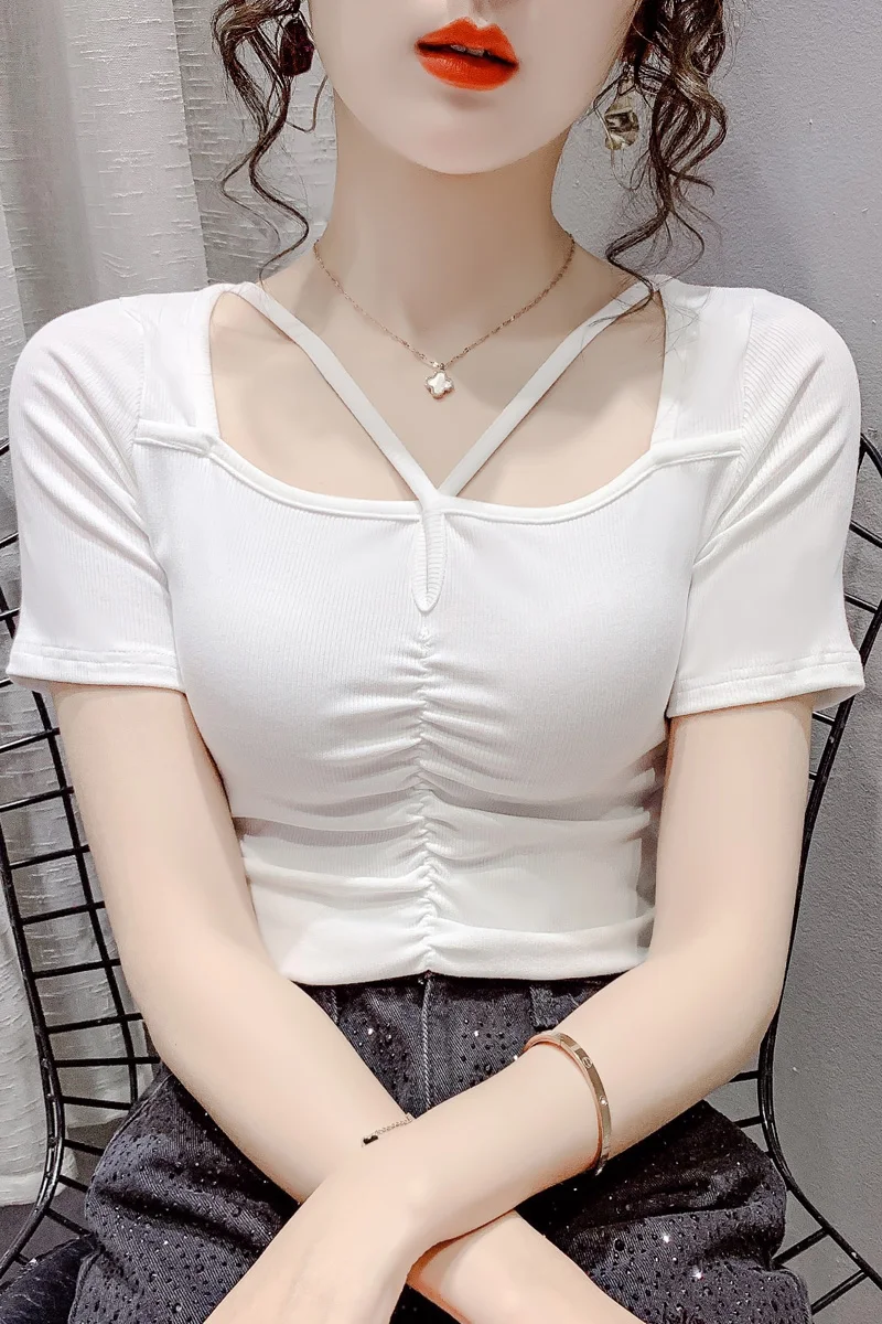 Patchwork Sexy Shirts For Women O Neck Sleeveless Ruched Slim Blouses Female Summer Clothing 2021 Fashion New Style