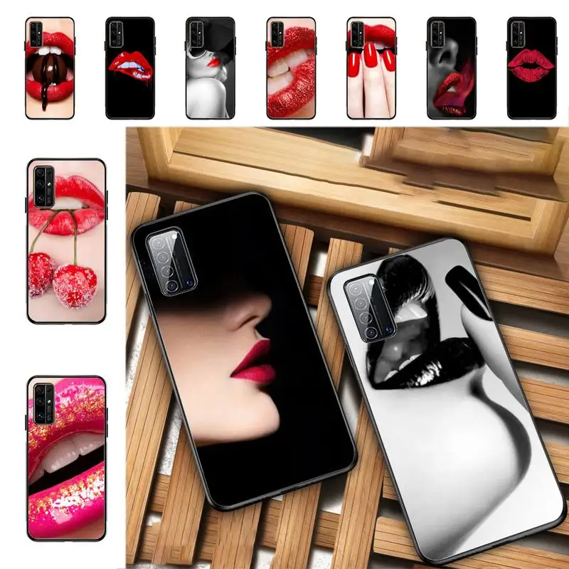 YNDFCNB Girl Red Lips Phone Case for Huawei Honor 8 x 9 10 20 V 30 pro 10 20 lite 7A 9lite case