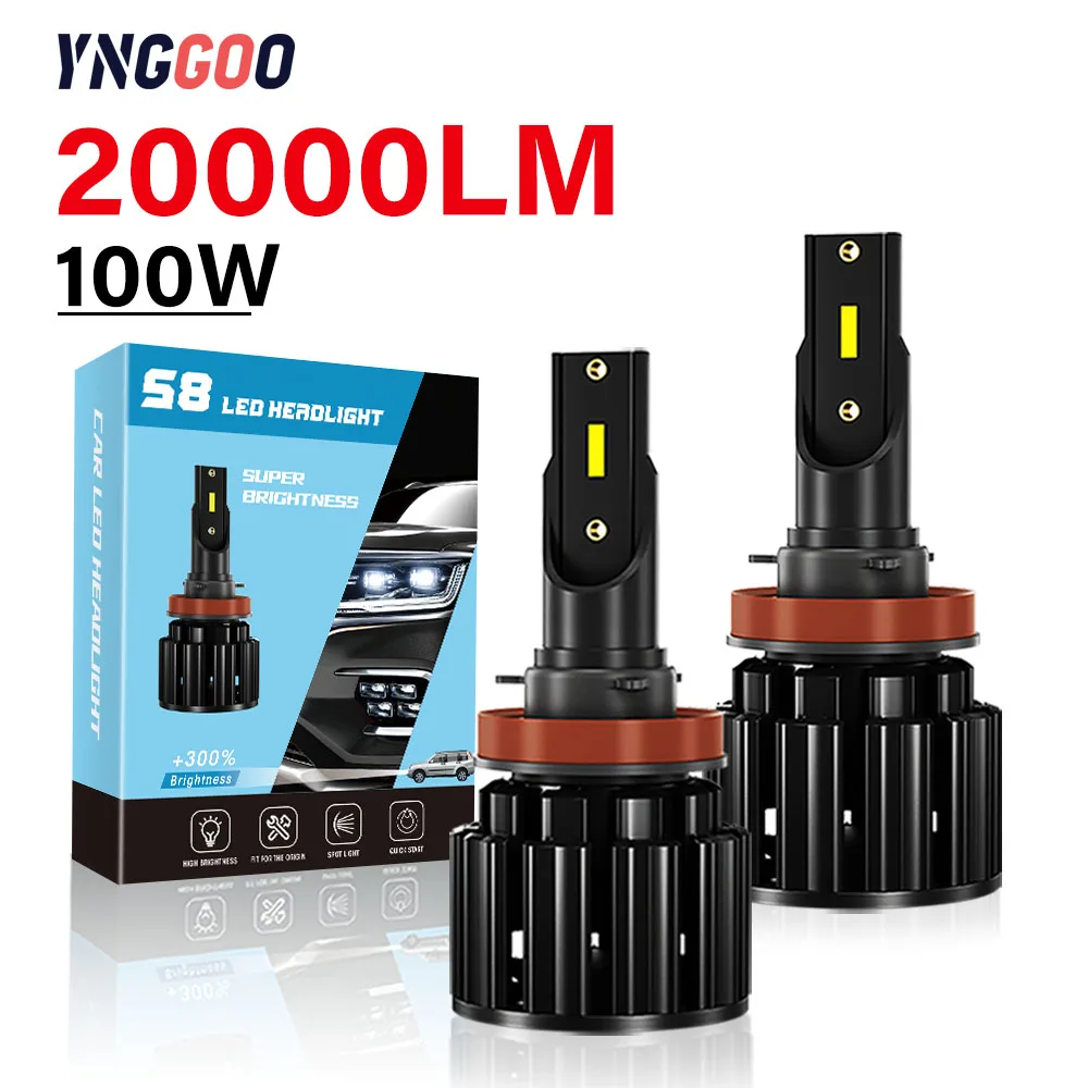 YNGGOO H1 H4 H7 H8 H9 H10 H11 лампы для автомобильных фар 9005 HB3 9006 HB4 9007 6000 лм двусторонний CSP чип 100 K белый Вт Plug & Play