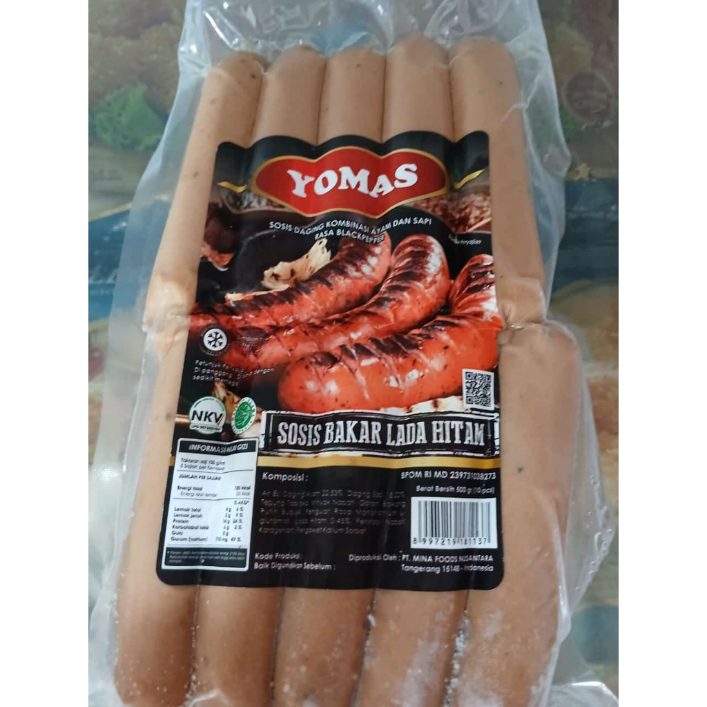 YOMAS SOSIS BAKAR SAPI LADA HITAM 500GRAM ISI 10 Pcs