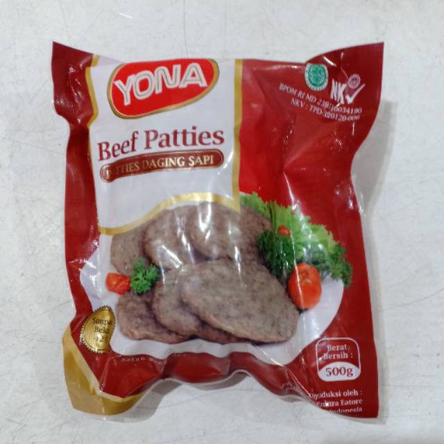 .Yona Beef Patties, dengan daging sapi pilihan terbaik, memiliki varian berat 500 gram, makanan Kesukaan anak anak, Cocok untuk isian burger.