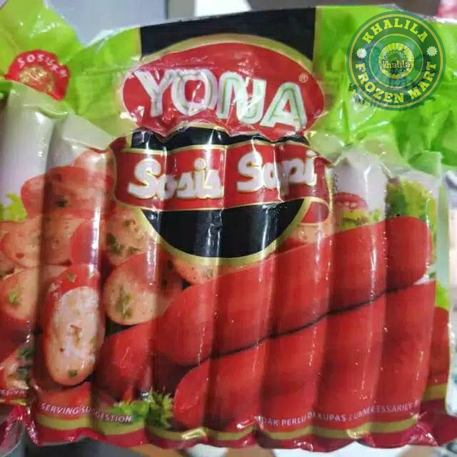 yona sosis bakar Terbuat dari daging Sapi pilihan yang diolah secara higienis sesuai dengan standar Internasional. yona sosis sapi cocok untuk cemilan dan lauk. sosis yona cocok untuk dibuat sosis bakar.