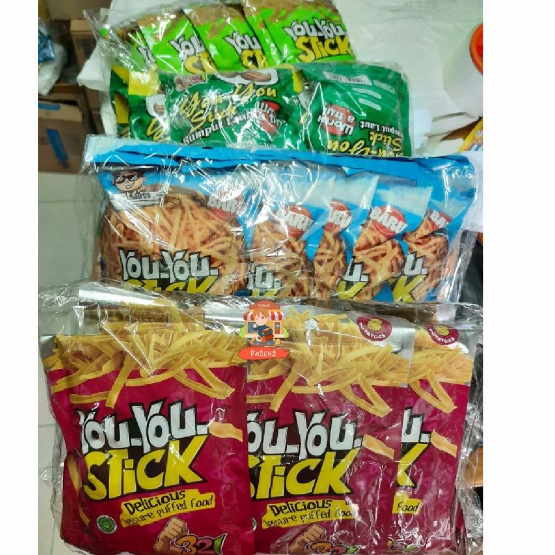 You_You Stick Kentang isi 10 pcs @ 20g. You_You Stick merupakan Keripik kentang berbentuk stik yang rasanya renyah, enak & nikmat. Ada 2 varian rasa yaitu original & sapi panggang
