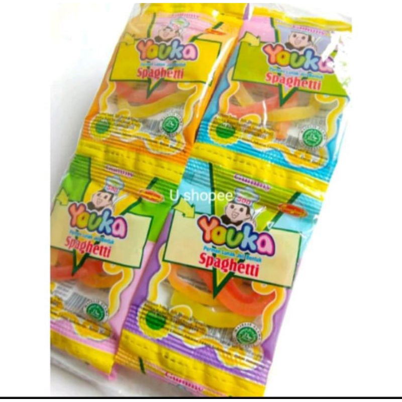 Youka Spaghetti adalah permen gummy berbentuk seperti mie spaghetti yang diproduksi oleh PT. Ranjani Jaya Lestari. Permen ini tersedia dalam berbagai rasa buah, seperti stroberi, jeruk, dan apel. Youka Spaghetti dibuat dengan bahan-bahan berkualitas dan secara higienis.