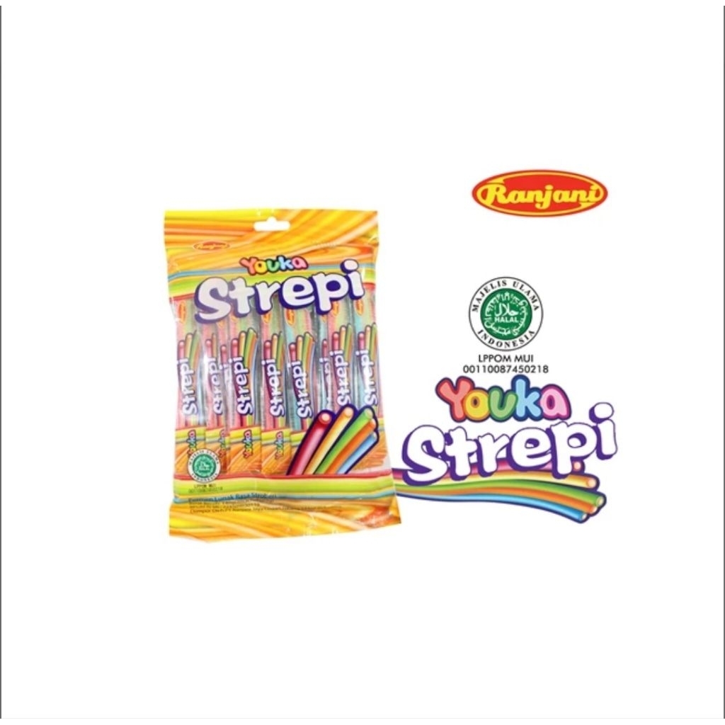 Permen Youka Strepi CandyAdalah Permen gummy berbentuk panjang dengan warna pelangi dan memiliki aneka rasa buah