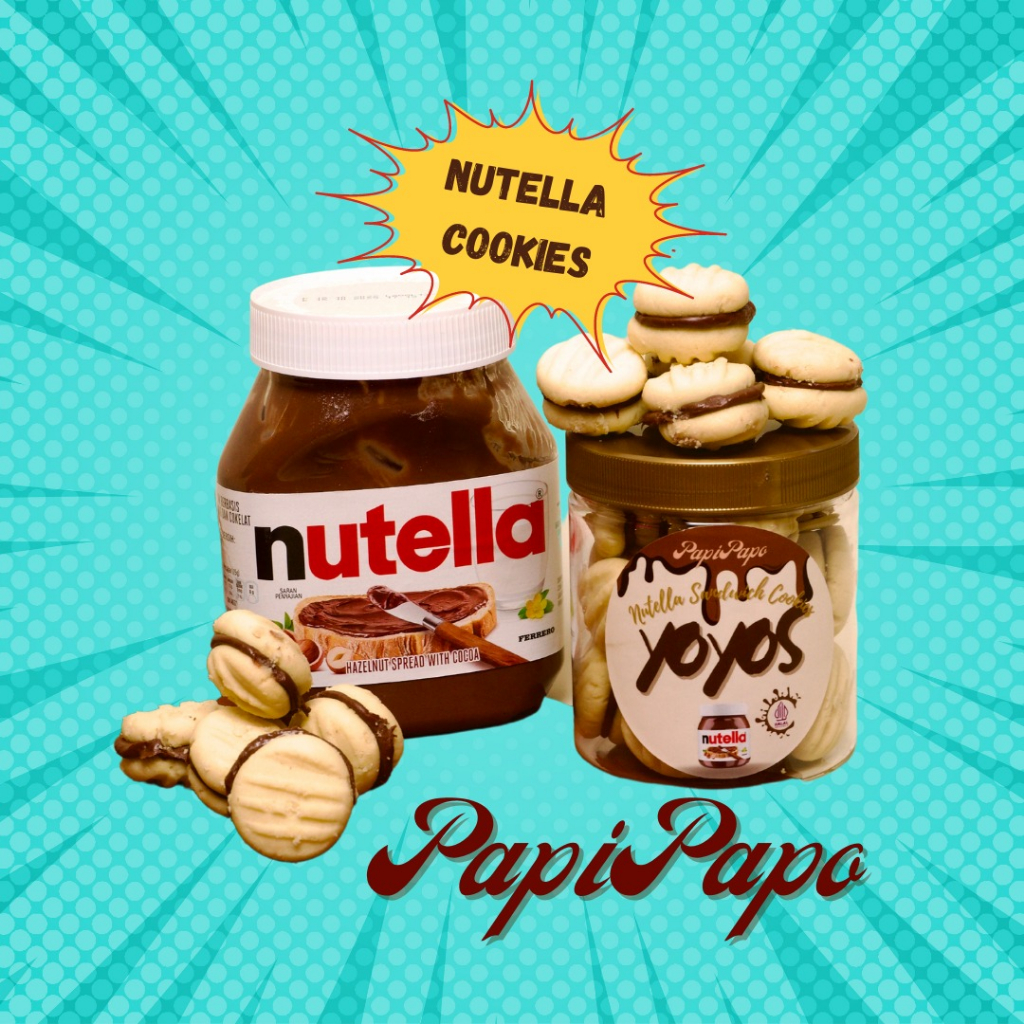 Perpaduan cookies yang lembut dipadukan dengan fillin coklat Nutella yang manisnya bisa bikin kamu nagih terus-terusan! DIJAMIN SUKAAA!