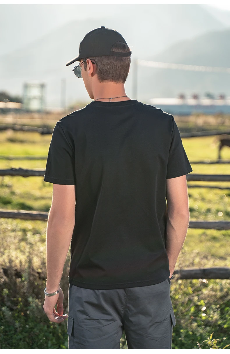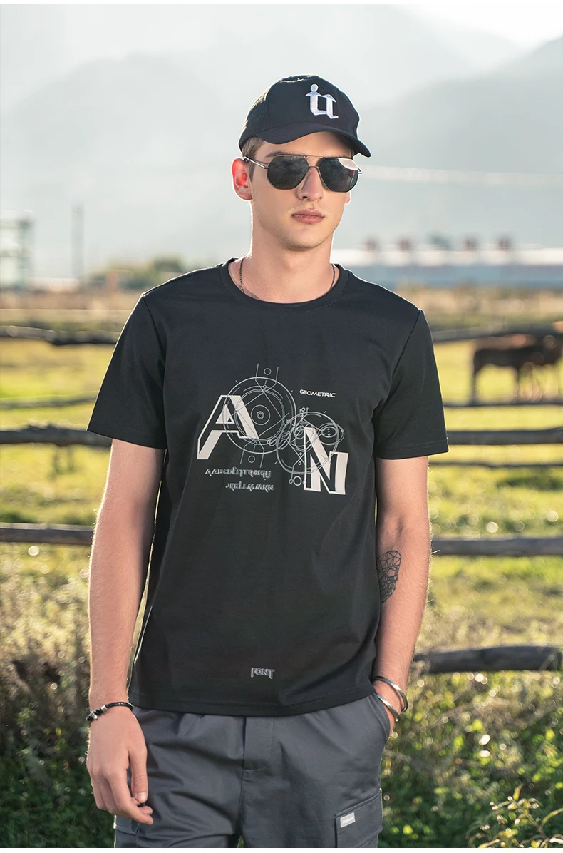 YTX2988 Летняя мужская футболка с коротким рукавом, модная Свободная рубашка с принтом этикетки и рукавом до локтя