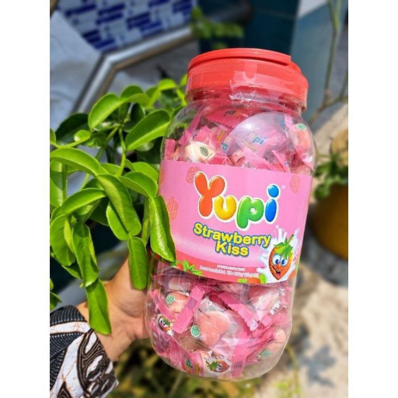 yupi kiss strawberry dengan Rasa khas strawberry yang disukai anak