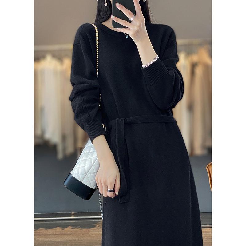 YYFS Женская мода Повседневная Осень Зима Однотонный Принт Длинный Рукав О-Образный Вырез Топы Женская Одежда Шерстяной Трикотаж Свитера Size: One Size чёрный