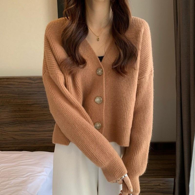 YYFS Женская мода Повседневный Осень Зима Однотонный Принт Длинный Рукав V-образный Вырез Свитера One size оранжевый