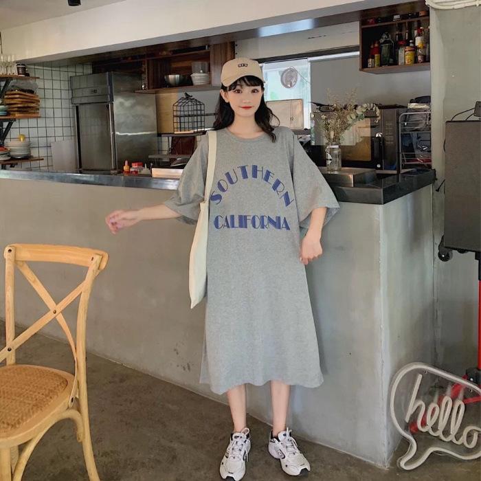 YYFS Женская мода Лето Весна Рукава 1/2 Круглый вырез Свободная талия Повседневные платья M серый