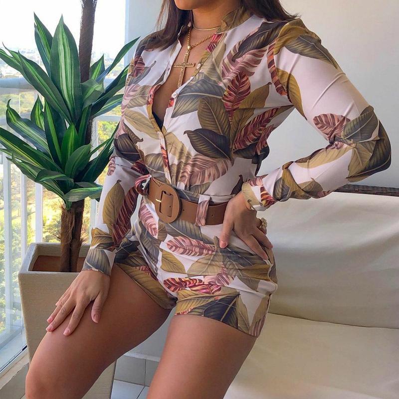 YYFS Женская мода Повседневная Весна Осень Цветочный узор Принт Длинный рукав Поло Воротник Блузки и рубашки Брюки Костюмы S