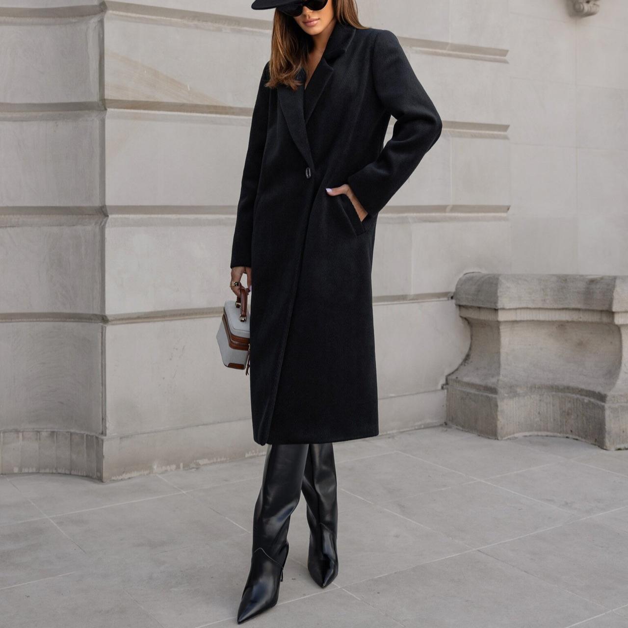 YYFS Женская мода повседневная осень-зима однотонный принт длинный рукав воротник поло пальто женские XXL чёрный