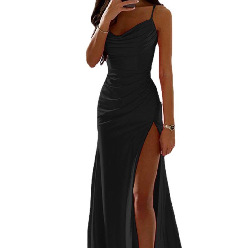 YYFS женские модные летние весенние однотонные повседневные платья без рукавов с подтяжками и высокой талией S чёрный