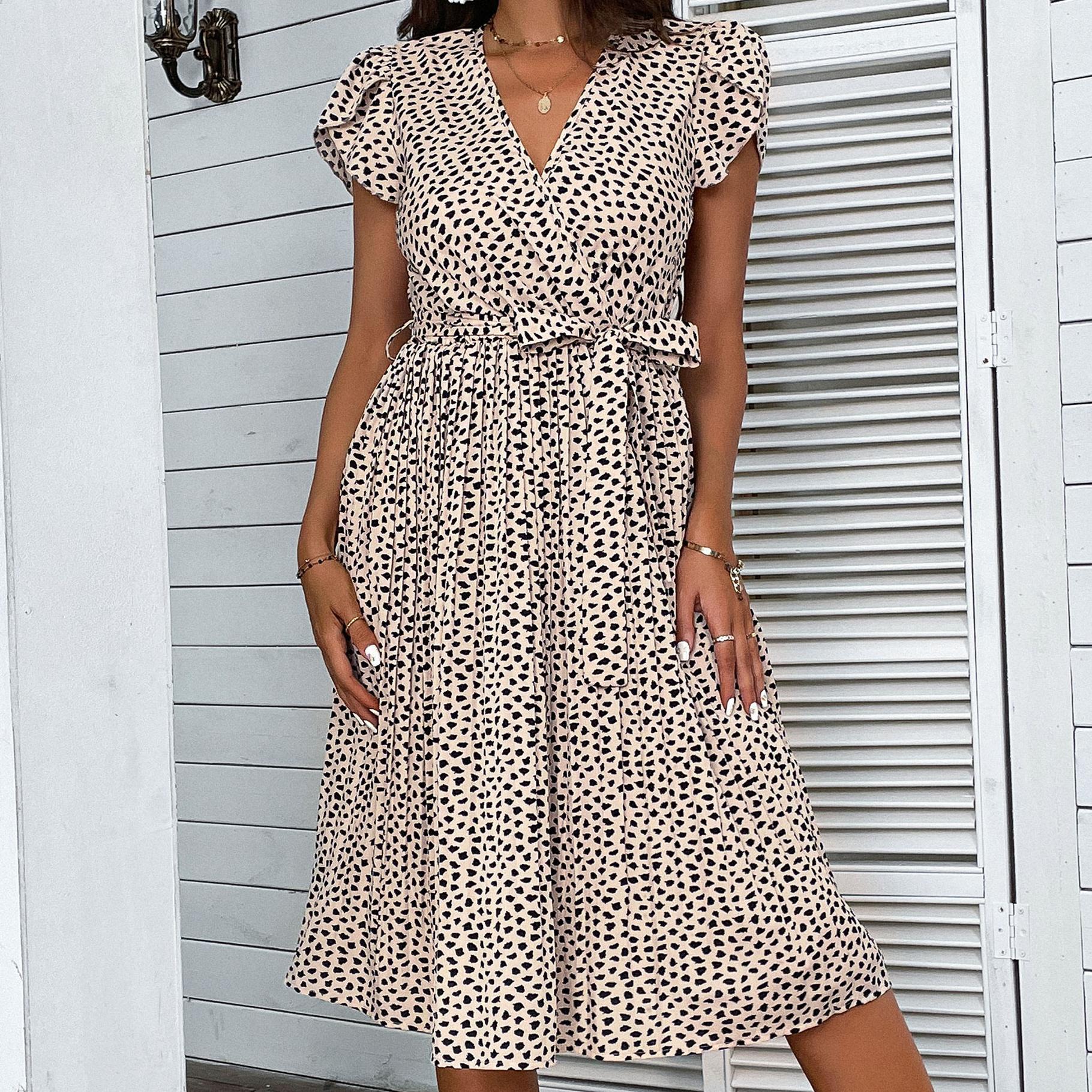 YYFS женские модные летние весенние повседневные платья с леопардовым принтом и коротким рукавом с v-образным вырезом и высокой талией XXL хаки