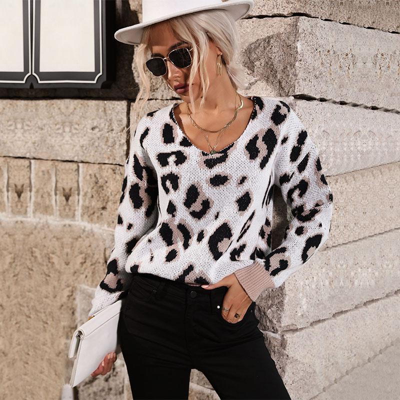 YYFS женские модные повседневные свободные свитера с леопардовым принтом осень-зима с длинным рукавом и v-образным вырезом L чёрный/белый