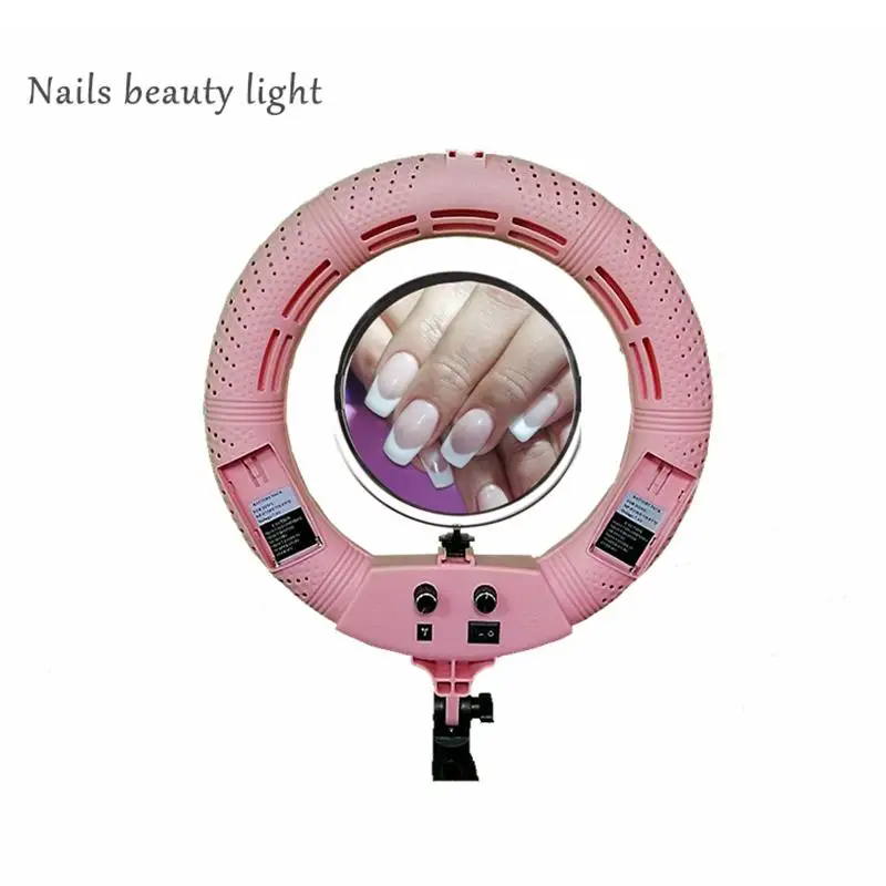 Yidoblo 12 дюймов, 38 Вт, розовый цвет, двухцветный SMD СВЕТОДИОДНЫЙ кольцевой светильник для селфи, гвозди, косметологический светильник с держате...