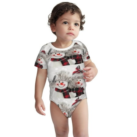 Fotbe Christmas Snowman With Hat Pattern Unisex-baby Short-sleeve Bodysuit Short Sleeve Bodysuits One-piece 100% Organic Cotton for Infant Baby Boys Unisex-6 Months