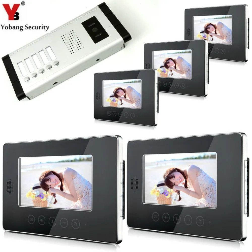 YobangSecurity 7" LCD Wired Video Door Phone Doorbell Intercom Monitor Visual Security Camera Bell System For 5 Unit Apartment