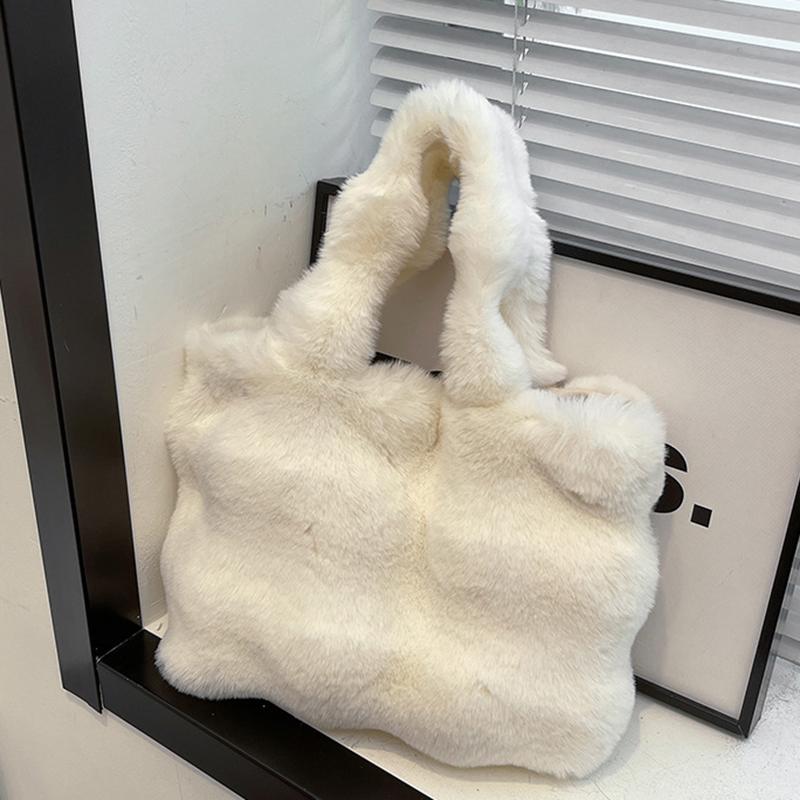 Yogodlns Женские пушистые сумки через плечо Зимняя сумка с верхней ручкой Плюшевая сумка-тоут Однотонная сумка для поездок на работу Универсальная сумка с ручкой 36x8x25cm белый