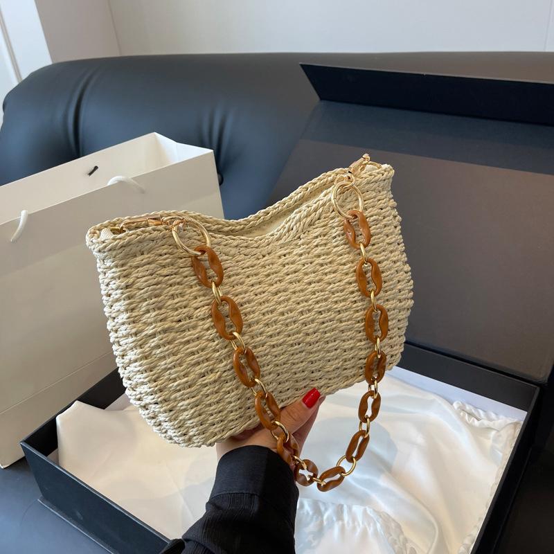 Yogodlns женская сумка на плечо ручной работы, летняя соломенная пляжная сумка, богемные женские сумки, модная дизайнерская сумка-хобо для покупок 26x7x17cm бежевый