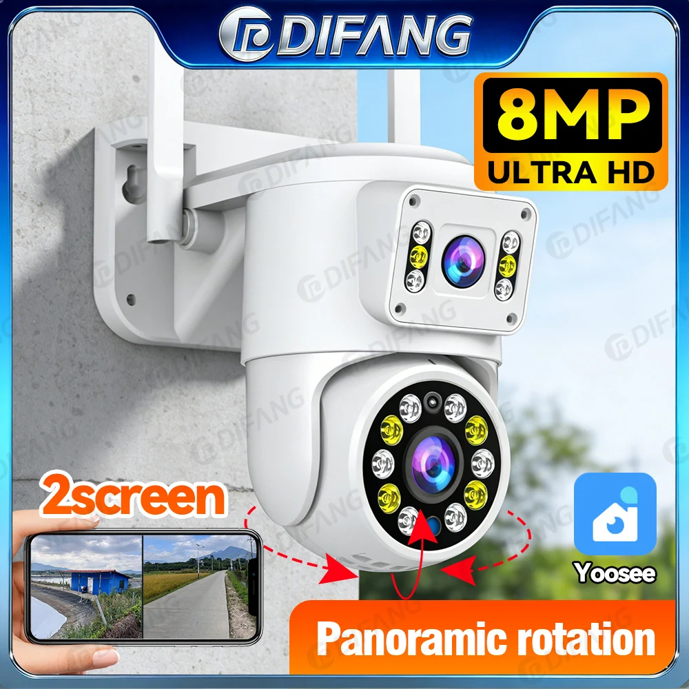 Yoosee 4K 8MP 360° Mini Security Camera WiFi Dual Screen & Auto Tracking Two Way Audio Night Vision CCTV Video Surveillance