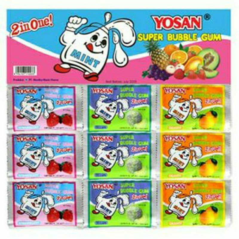 Yosan Permen Karet Isi 24 Pcs / Permen Karet Yosan isi 24 pcs / Permen Karet Jadul / Permen Karet Yosan 1 Renceng isi 24 Pcs