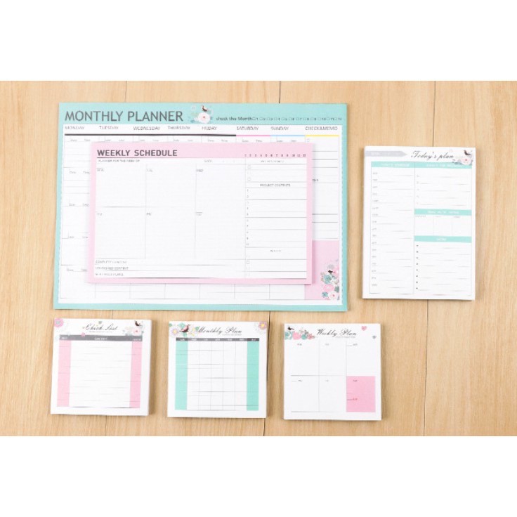 Checklist, Weekly Planner, Monthly Planner Flower Bird terbuat dari bahan kertas. Memudahkan kamu tuk mencatat setiap perencanaanmu, baik per waktu, hari, minggu, maupun bulan.