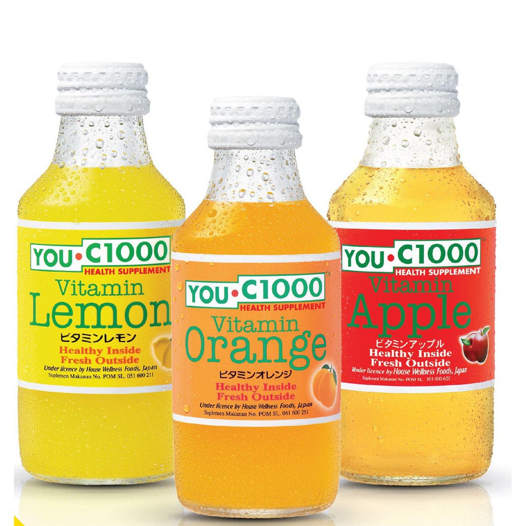 You C1000 Botol Kaca All Variant Rasa Jeruk | Apel | Lemon 140ml Isi 30pcs / Karton