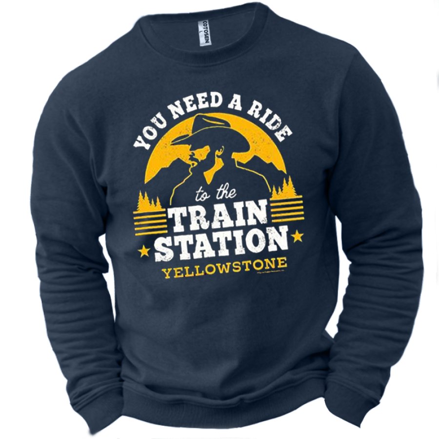 You Need A Ride To Be Train Station Men's Fun Yellowstone Print Crew Neck Sweatshirt