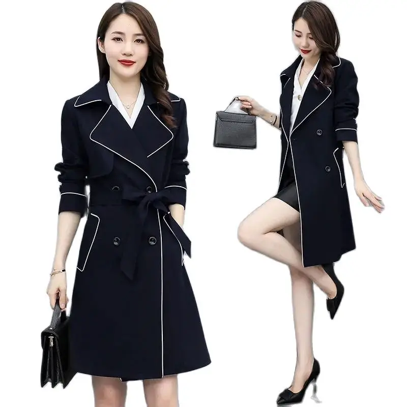 [Youlicloth] Высококачественная ветровка Женская весенняя одежда 2023 новая трендовая Свободная верхняя одежда средней длины на шнуровке однотонная