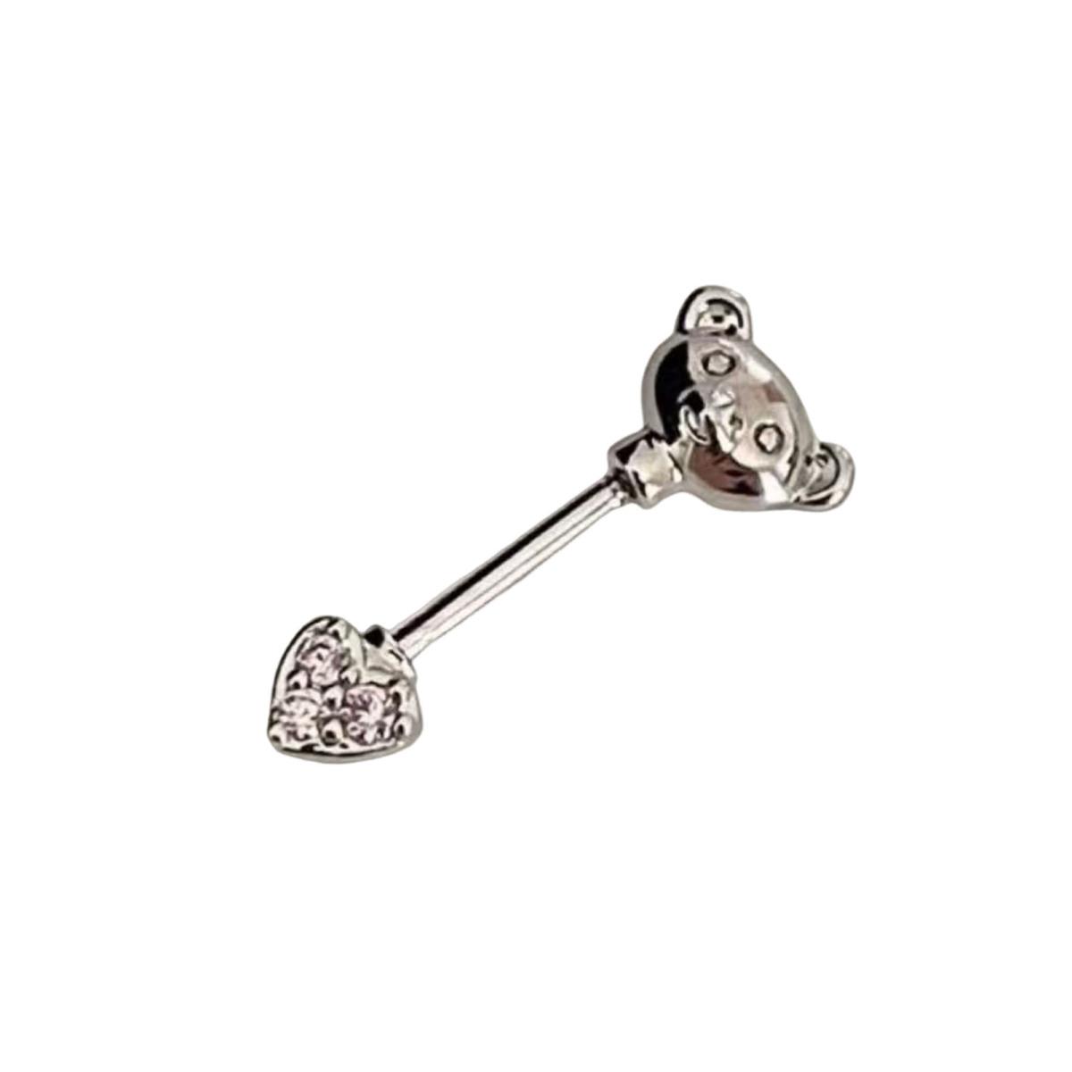 Yousheng 1 шт. Серьги-гвоздики с изображением медведя из мультфильма и в форме сердца, блестящие кубические циркониевые серьги для хряща уха для клубных вечеринок, кольцо для носа без адреналина розовый