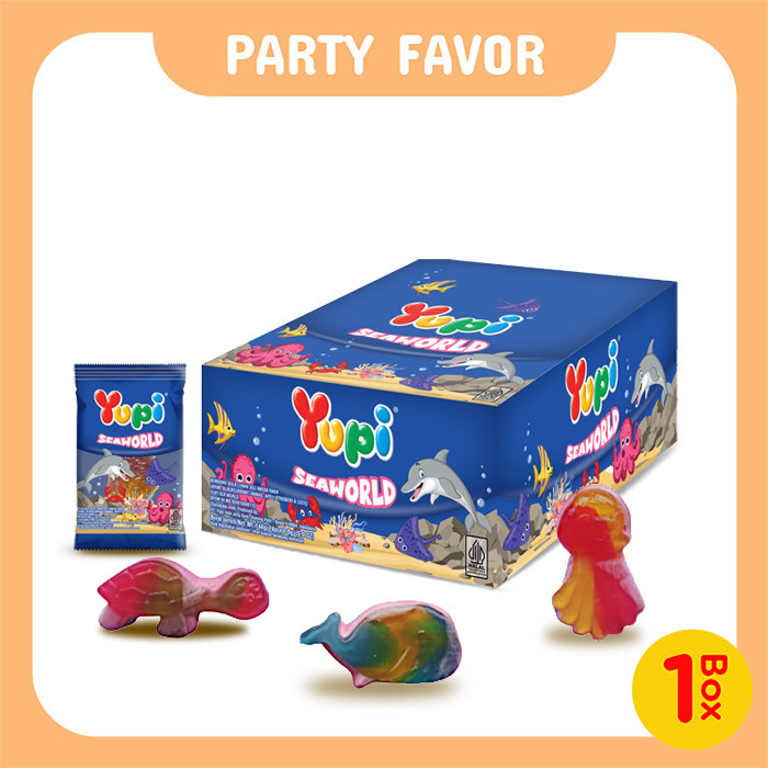 Yupi sea world dengan bentuk aneka binatang laut, dengan rasa buah yang enak, sehat, dan kualitas terpercaya dari Yupi.