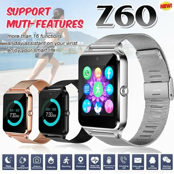 Z60 Smart Watch Clock Pedometer Metal Strap Bluetooth Wrist Smartwatch Support SIM TF Card Android&IOS Watch Multi-languages