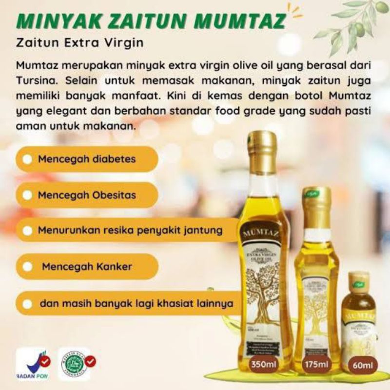 Zaitun Mumtaz Merupakan salah satu produk yang memiliki banyak manfaat bagi kesehatan tubuh manusia, baik di bidang kecantikan maupun di bidang kesehatan.