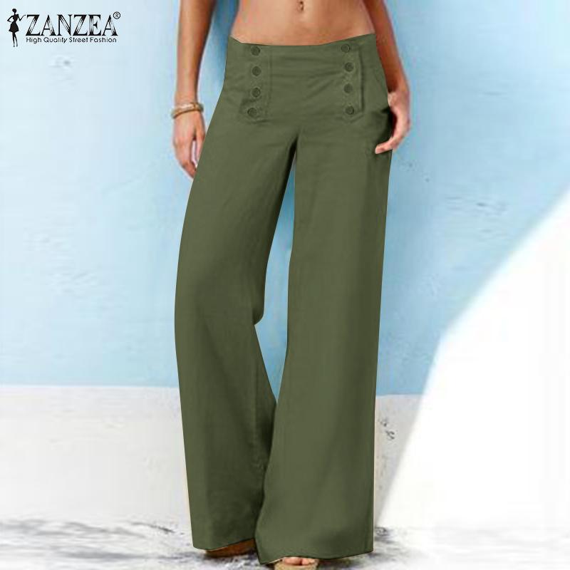 ZANZEA Женские повседневные свободные хлопковые широкие брюки на молнии сзади