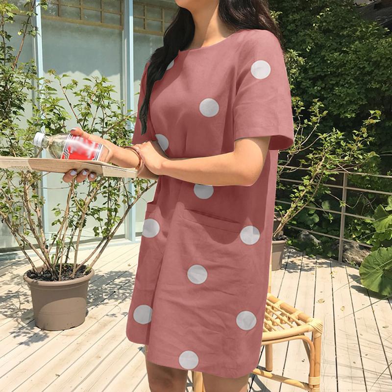 ZANZEA Женское корейское повседневное отпускное платье H-силуэта с коротким рукавом и принтом в горошек S розовый