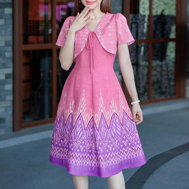 ZANZEA Женское летнее платье на шнуровке с V-образным вырезом, повседневное, с коротким рукавом и принтом 4XL темно-розовый