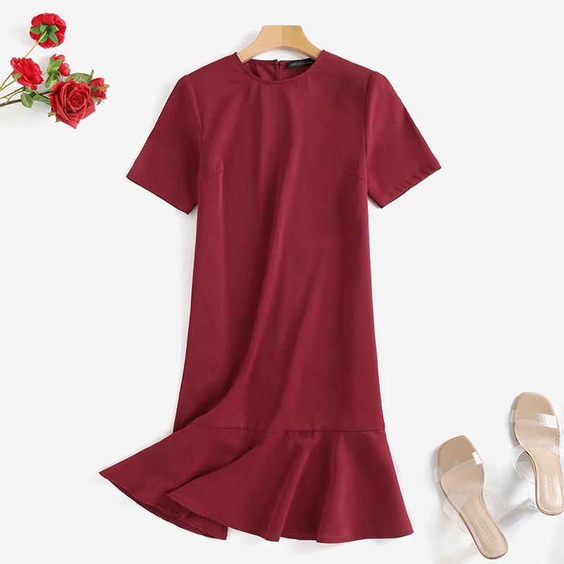 ZANZEA Женское летнее повседневное платье с коротким рукавом и оборками по подолу M вино красного