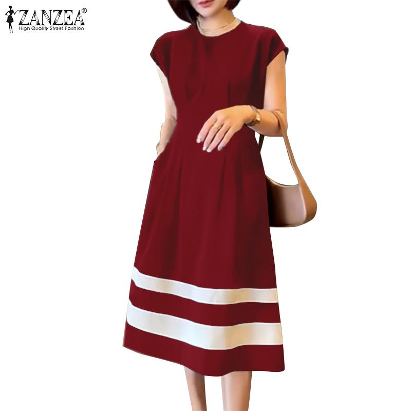 ZANZEA Женское повседневное летнее платье в полоску без рукавов с круглым вырезом S хаки