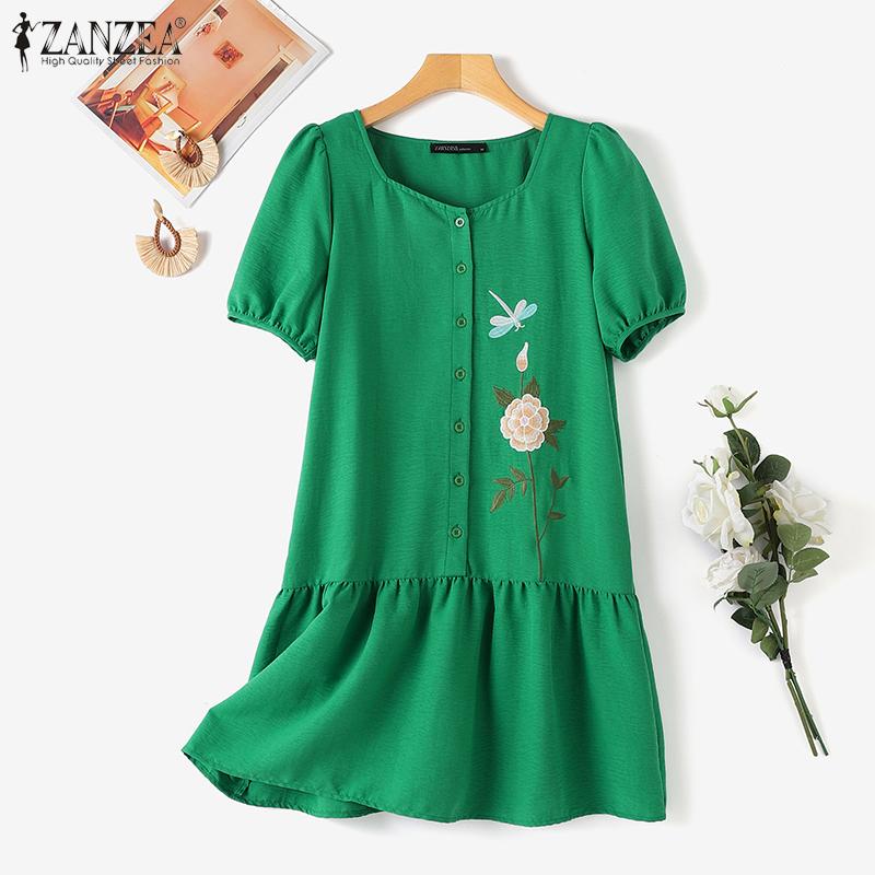 ZANZEA Женское повседневное летнее платье с короткими рукавами и цветочной вышивкой