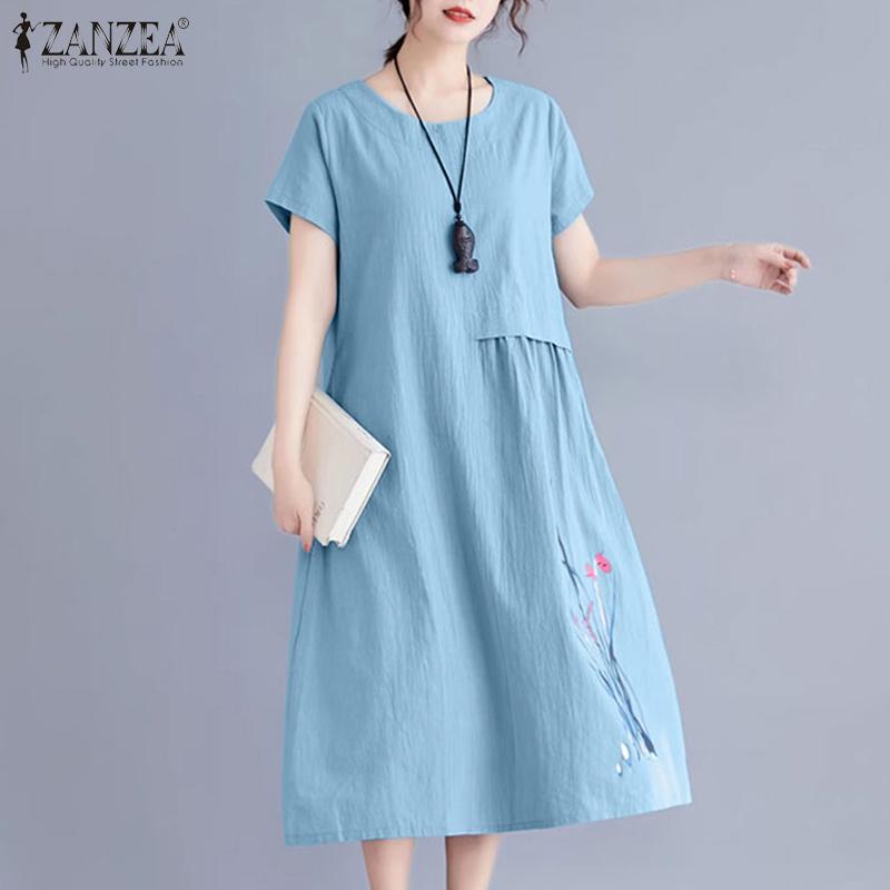 ZANZEA Женское повседневное платье с короткими рукавами и круглым вырезом с принтом