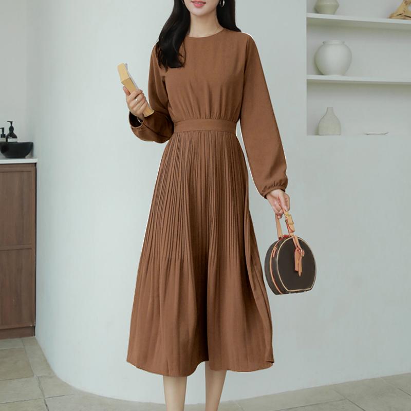 ZANZEA Женское повседневное плиссированное платье в стиле пэчворк с длинным рукавом свободного кроя 5XL коричневый