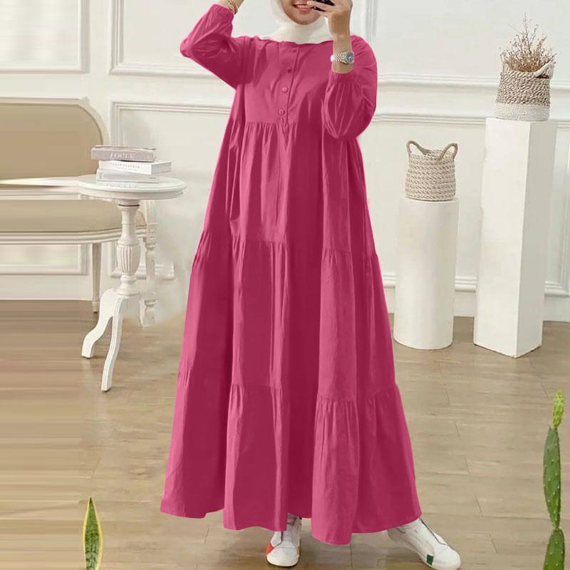 ZANZEA Женское повседневное свободное длинное платье в стиле ретро с круглым вырезом и рукавами девять четвертей 5XL ярко-розовый