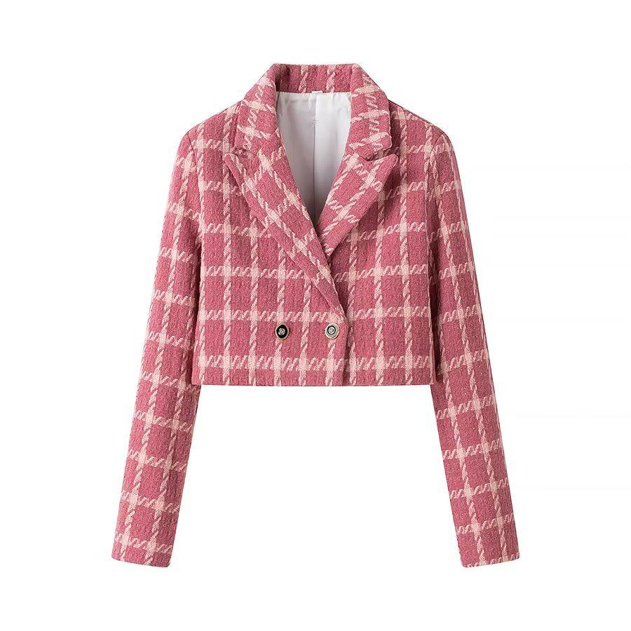 ZARZ Женское классическое шикарное пальто в клетку в европейском и американском стиле Small розовый
