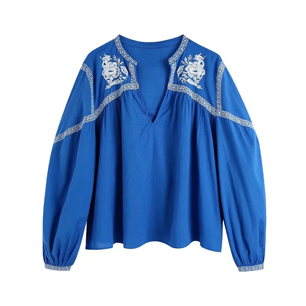 ZATRHMBM, Новинка весна-лето 2022, модные женские блузки контрастных цветов с вышивкой и V-образным вырезом, 2022