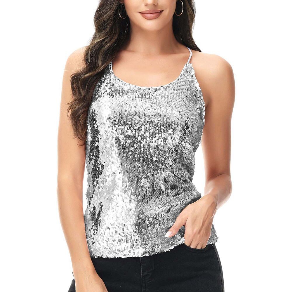Женская блестящая майка с бритвенным ремешком на спине Anna-Kaci, цвет Silver