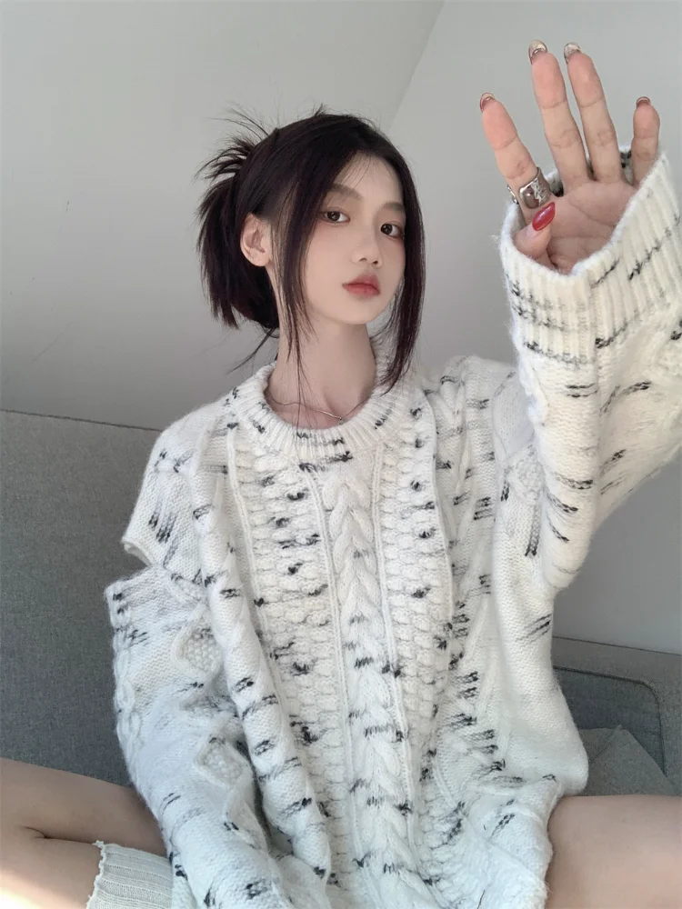 ZCSMLL 2022 дизайнерский Толстый Пуловер с открытыми плечами на осень и зиму женский свитер с длинным рукавом и круглым вырезом в винтажном стиле