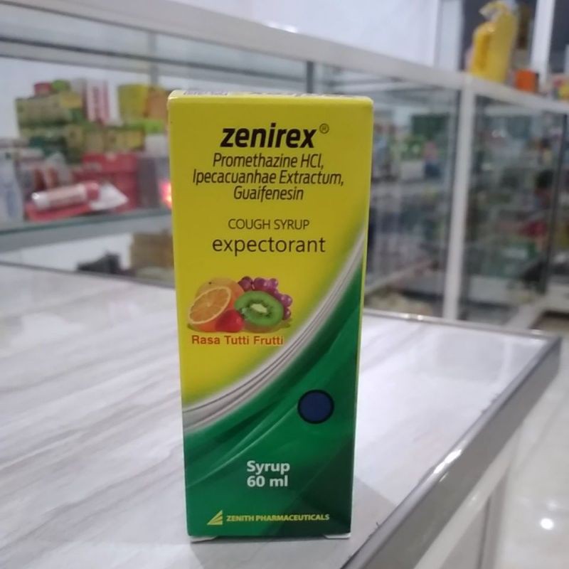 ZENIREX SYRN 60ML megandung Promethazine Hydrochloride, Guaifenesin dan Ipecacuanhae Extract.yang berfungsi untuk meredakan batuk yang berdahak atau batuk yang disebabkan oleh alergi.