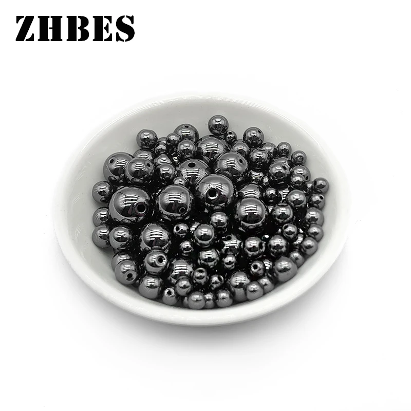 ZHBES 3/4/6/8/10/12 мм натуральные камни, круглые черный гематит бусины Spacer Бусины для изготовления ювелирных изделий браслет ювелирных изделий DIY Аксессуары